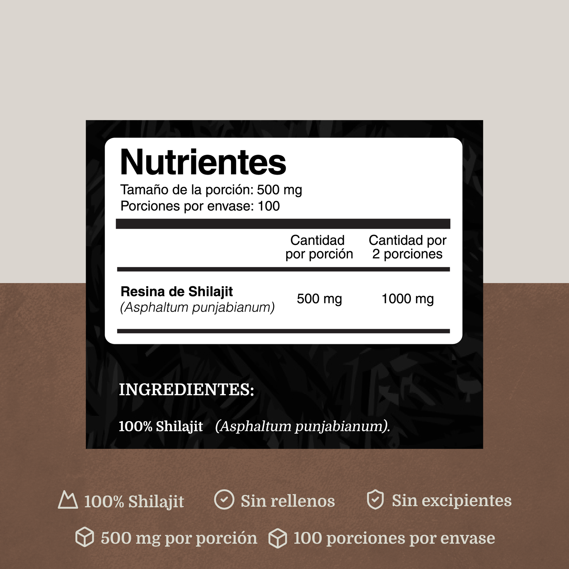 Nuestro Shilajit se obtiene mediante extracción en frío para preservar su composición natural, rica en ácido fúlvico y minerales traza. Cada gramo aporta 1000 mg de Asphaltum Punjabianum puro.